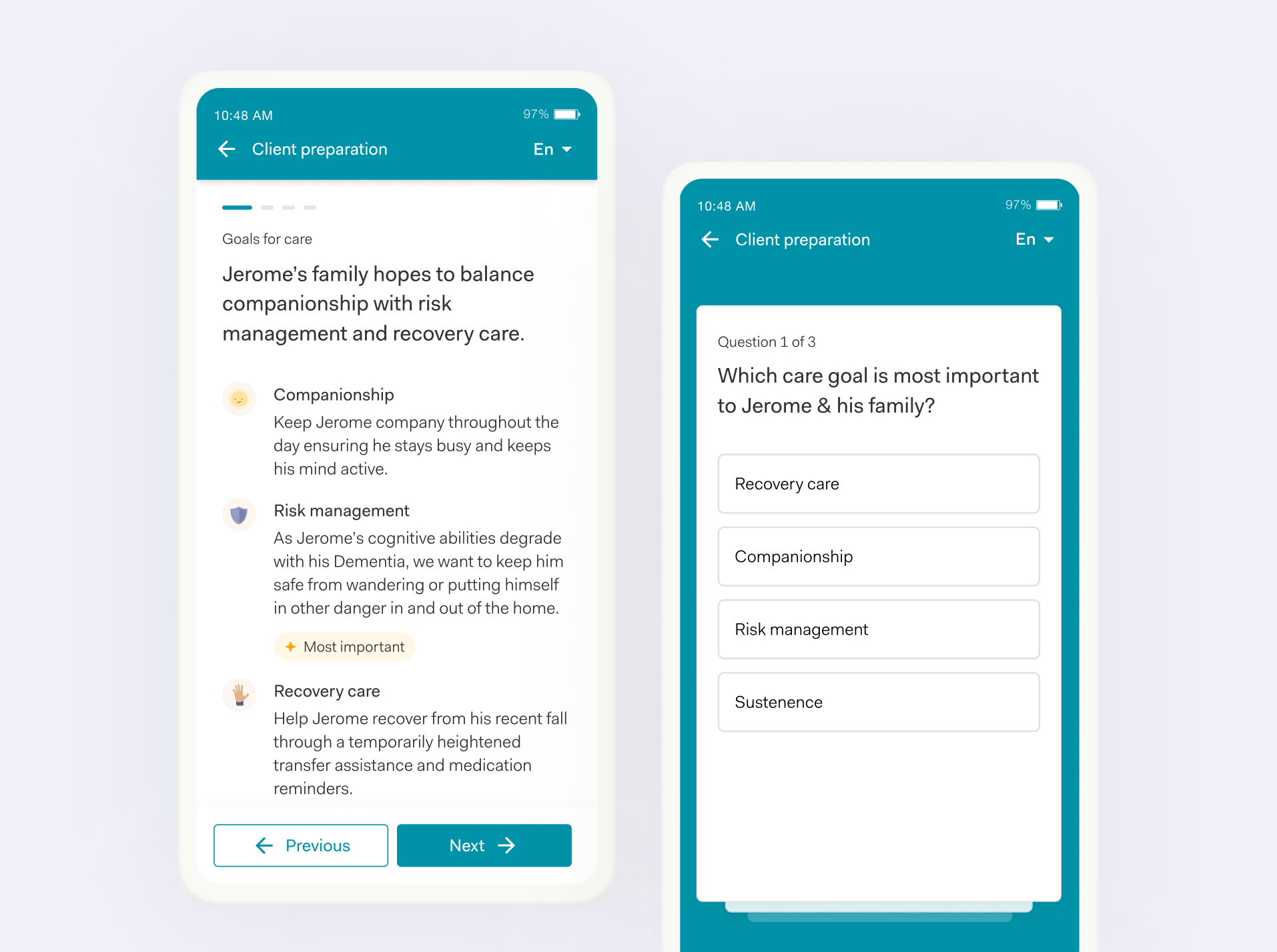 Our study uncovered that not only were a large subset of clients unfamiliar with the Honor & HomeInstead partnership, many were deeply unsatisfied with their new care delivery service through Honor, specifically, the lack or personalization and high-touch care that naturally might not come from a 24/7 operational company.